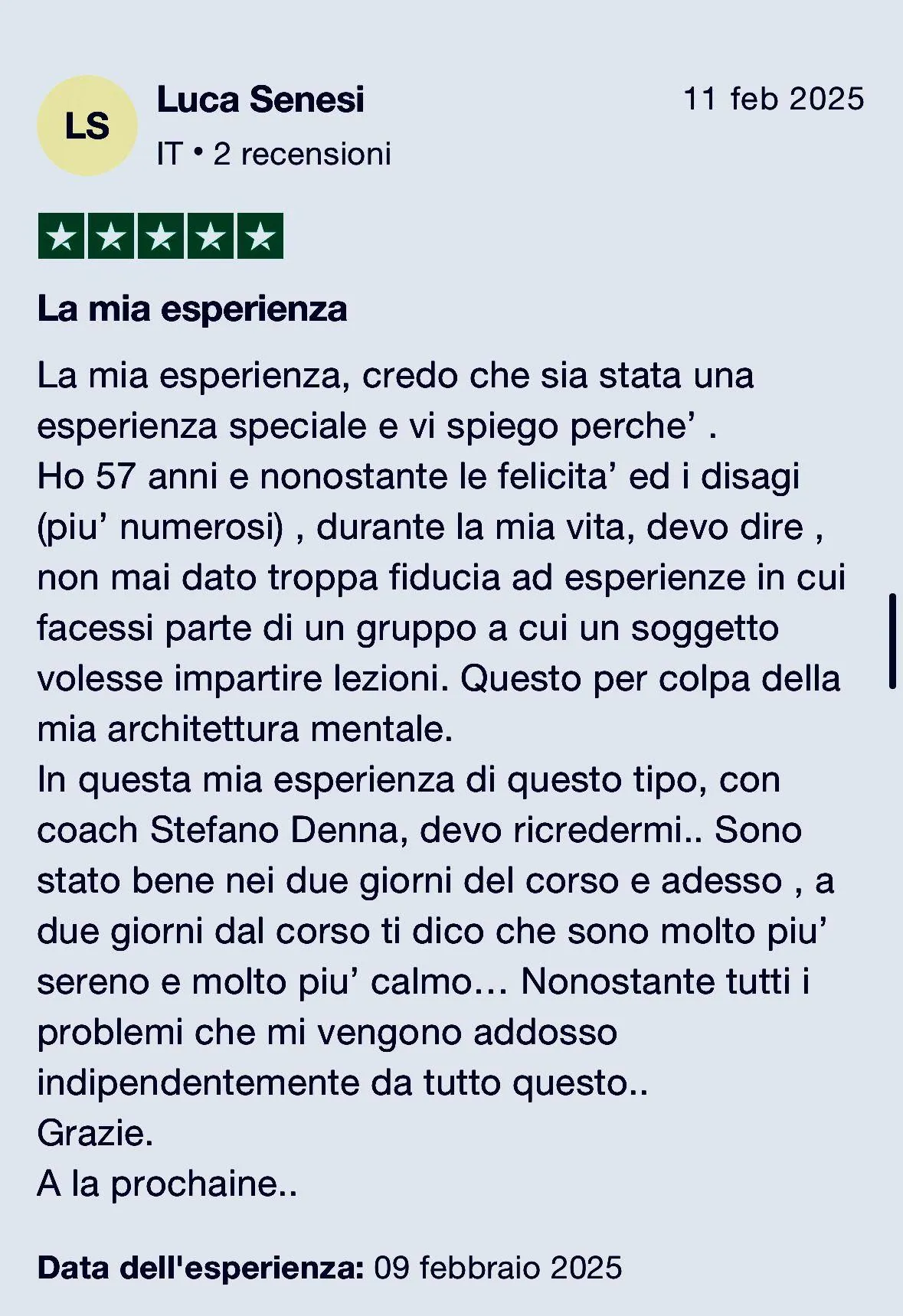 Durante il workshop, Stefano ha coinvolto i partecipanti con la sua approfondita conoscenza e tecniche interattive, creando un ambiente ricco di energia positiva e di impegno attivo. Il feedback entusiasta dei partecipanti e il loro coinvolgimento evidente hanno sottolineato il valore e l'efficacia del corso.